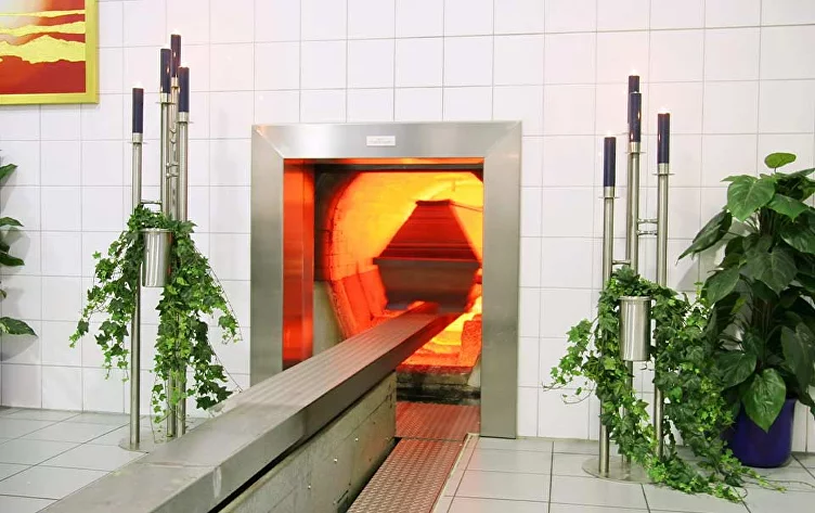 После того, как гроб помещен в печь, включается нагнетатель воздуха, а потом и газ. Температура в печах обычно около 500-800 градусов, поэтому тело горит всего от 40 минут до полутора часа, в зависимости от конституции тела. При этом интересно то, что сгорают не все останки: часть желудка и большие кости не перегорают полностью, поэтому нужно произвести их последующую обработку.
